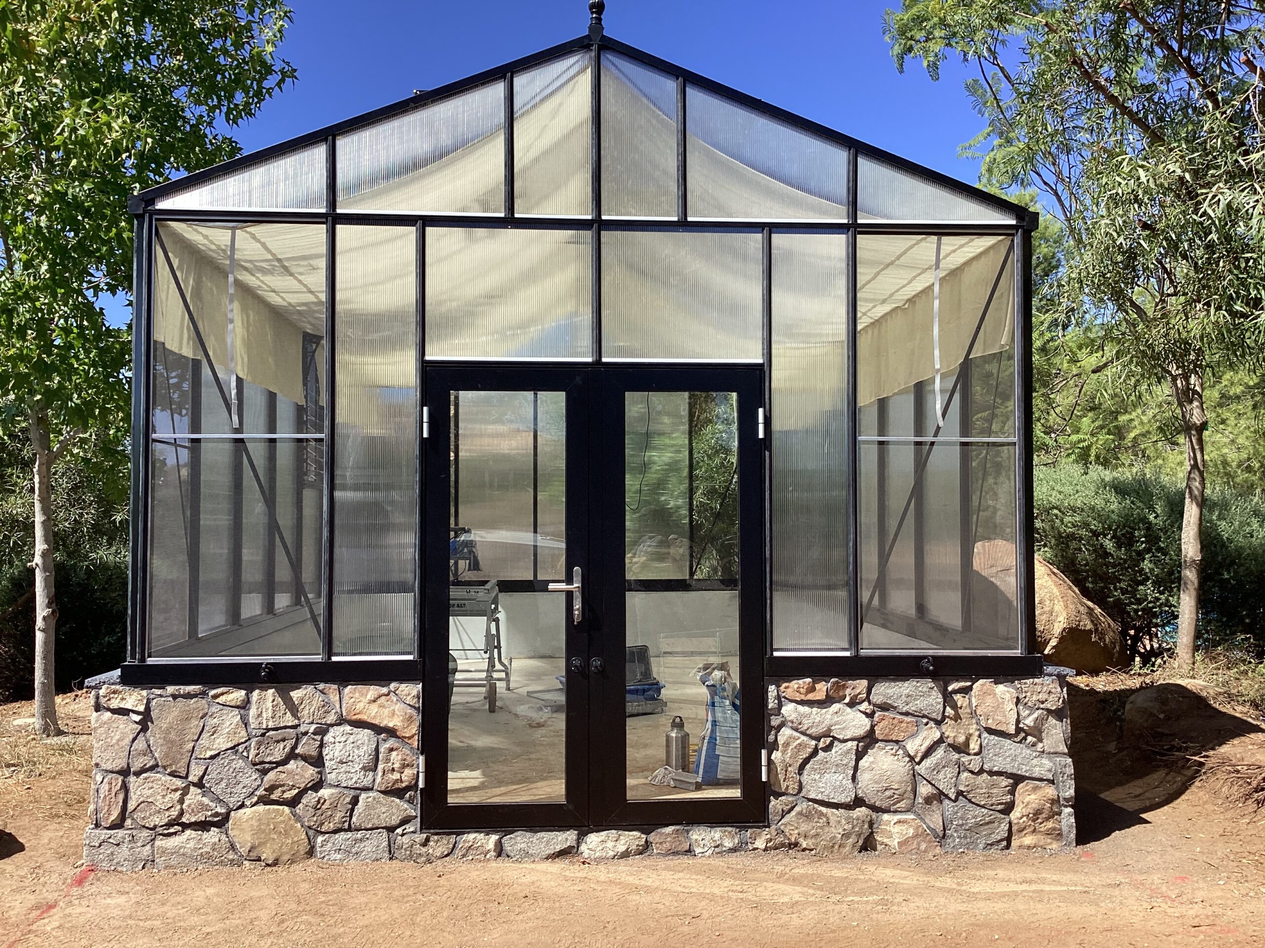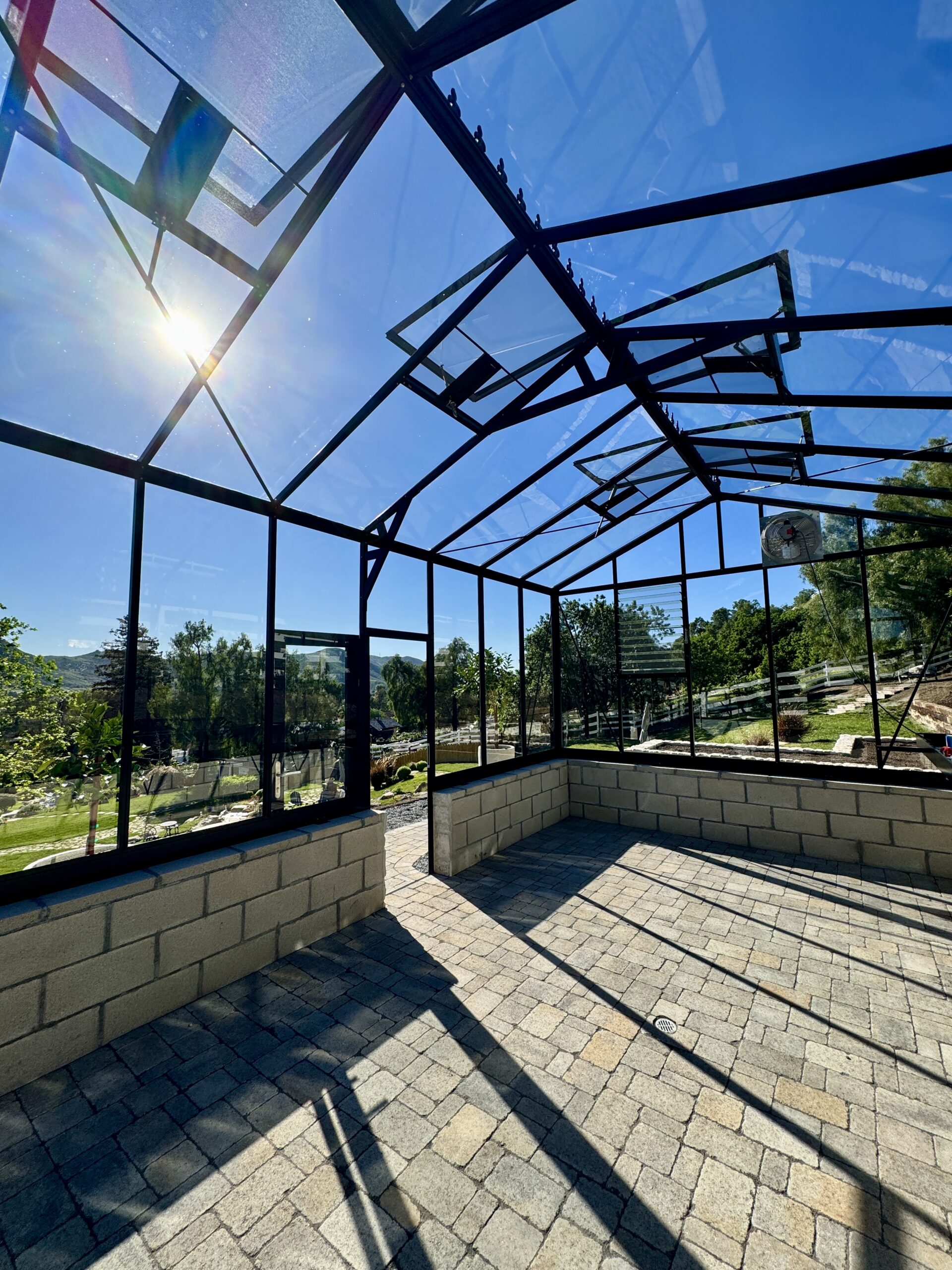 6-Roof Windows (4-automatic openers, 2 spindle openers great in windy conditions). double sliding doors, can be put in any vertical glass location (front, back or sides), louver window with lexan clear cover for the winter season. 3 scrolls for extra center support and misting system (customer has to provide a hose to connect to faucet)